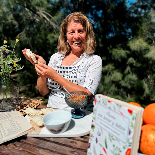 La cocina le gustó de chica por cultura familiar, pero en Cañuelas empezó a dedicarse a la venta de repostería, aplicando sus estudios en escultura también a las tortas. Luego se extendió al catering de eventos, abarcando toda la diversidad gastronómica, y así decide volcar sus conocimientos en su primer libro, Recetas con amor y sabor, que abre la serie de publicaciones de Editorial Cañuelas.
